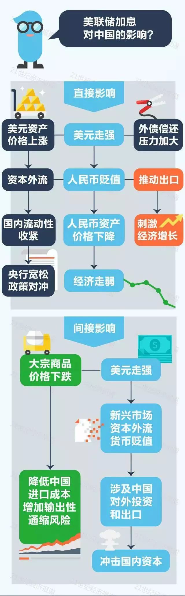 首先,我们从逻辑上来看看,美联储加息,对中国会带来哪些直接影响和间接影响: