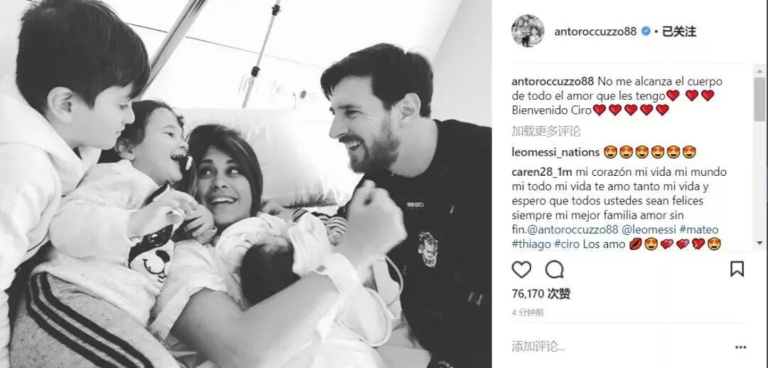 就在今年3月10日,他的第三个孩子西罗·梅西 (Ciro Messi)降生了。