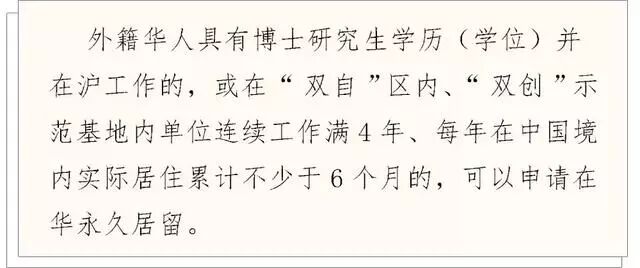 此外,属于国家“千人计划”的外籍人才也可以申请在华永久居留。这些外国人永久居留身份新政的出台,极大地便利了外籍人才来沪发展、定居。