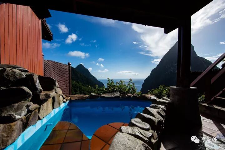 正对着Pitons,左边的是Gros Piton(大皮通),右边的是Petit Piton(小皮通)
