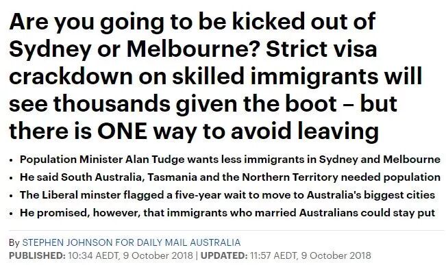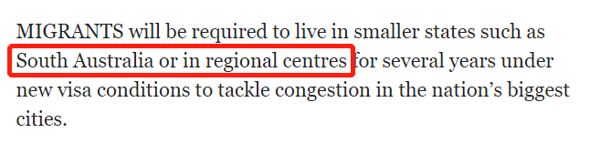 限制悉尼墨尔本新移民的数量,强制要求技术移民去到北领地,南澳等地定居