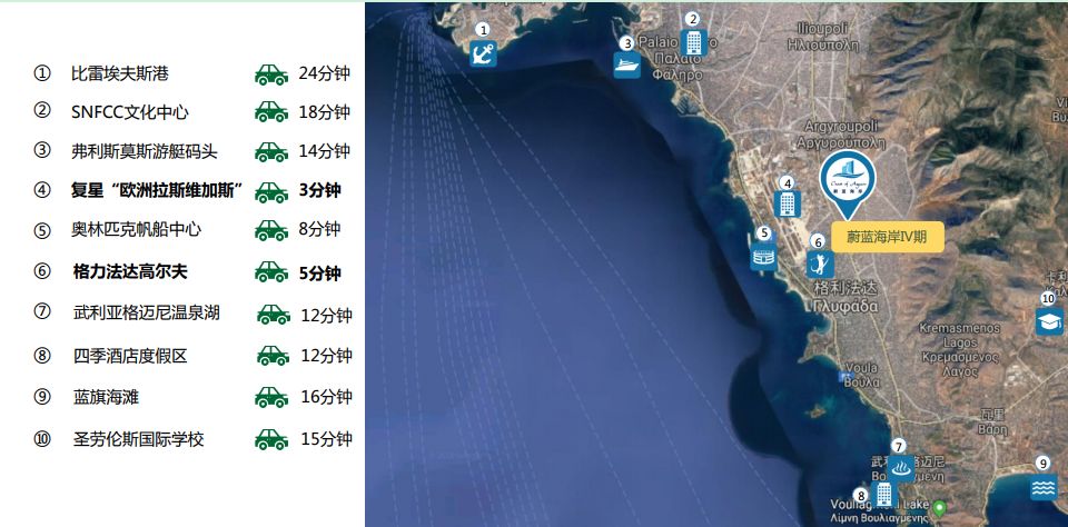 滨海资源——位居雅典黄金海岸,临近复星“欧洲拉斯维加斯”、格力法达 高尔夫、SNFCC文化中心(国家大剧院和国家图书馆)、武 利亚格迈尼温泉湖等地标资源 高尔夫旁——临近格力法达高尔夫俱乐部,生态环境优越 别墅品质——以公寓价格享受别墅级居住品质 品质精装——统一高品质精装标准 壌邻学府——临近公立学校,距离圣劳伦斯学校仅15分钟车程 售后无忧——360度售后服务,全无后顾之忧