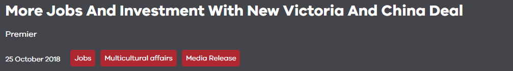 这项具有里程碑意义的协议表明了今后维州与中国之间的密切关系,各级政府的积极参与,包括维州州长安德鲁先生四次访华,并遵循澳中一带一路倡议(ACBRI)的合作!