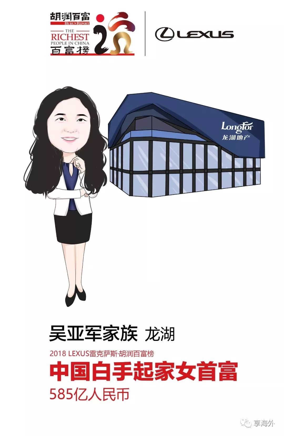 去年7月至今,吴亚军家族通过所持有的港股上市公司龙湖地产股份获得分红19.5亿元。吴亚军家族以财富585亿元位列《2018 LEXUS雷克萨斯•胡润百富榜》第33位。