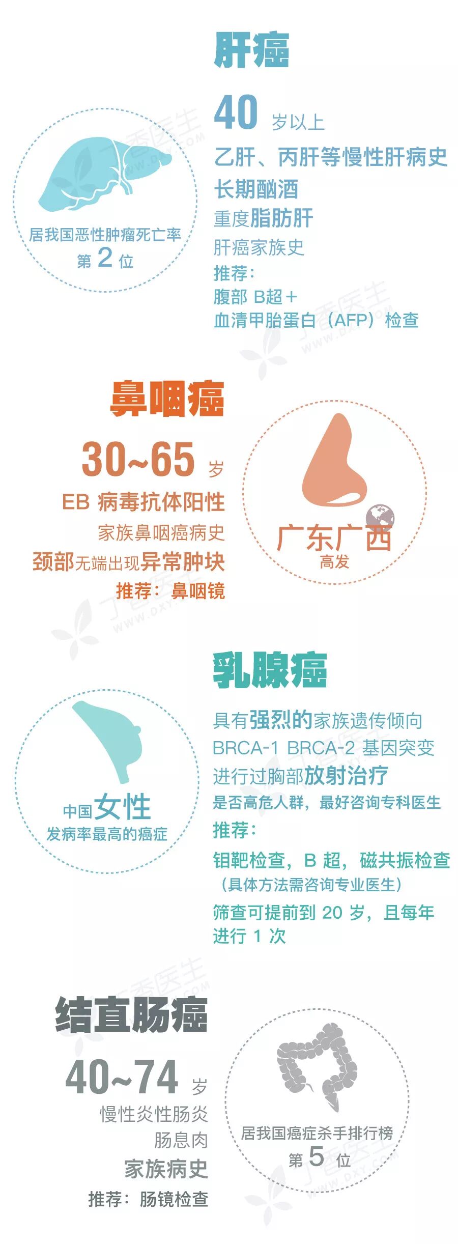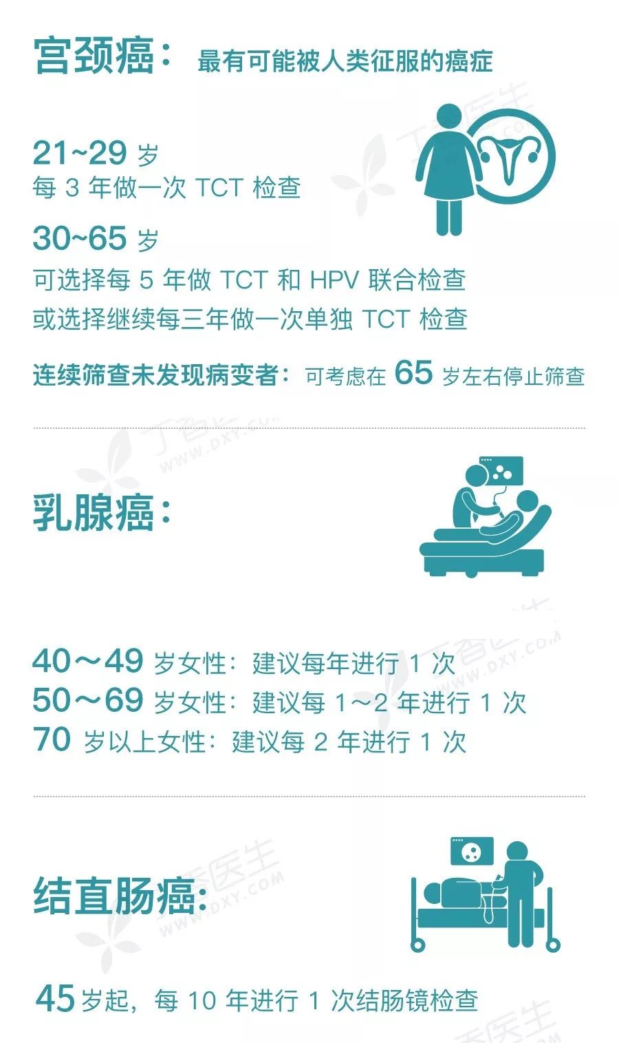 筛查是重要的防癌手段。医生们建议我们定期体检,并进行必要的癌症筛查。针对我国常见的几种癌症,你可以这么做: