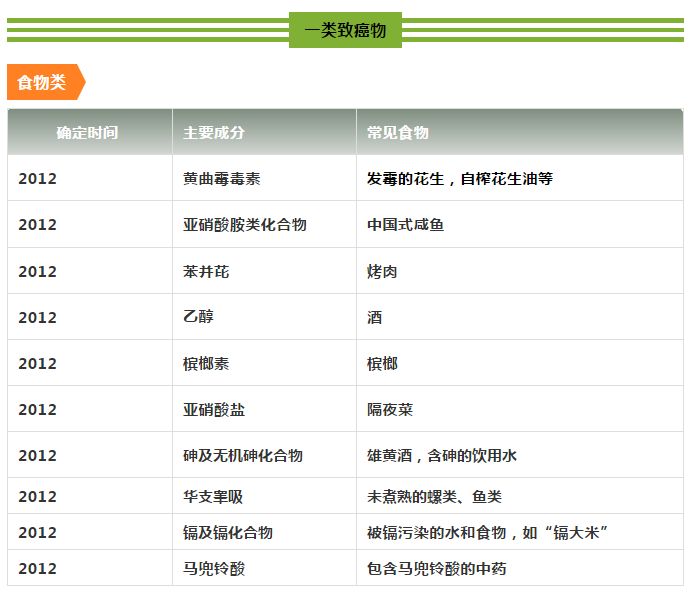 中国食品药品检定研究院安全评价研究所根据世界卫生组织国际癌症研究机构2017年10月27日公布的致癌物清单初步整理