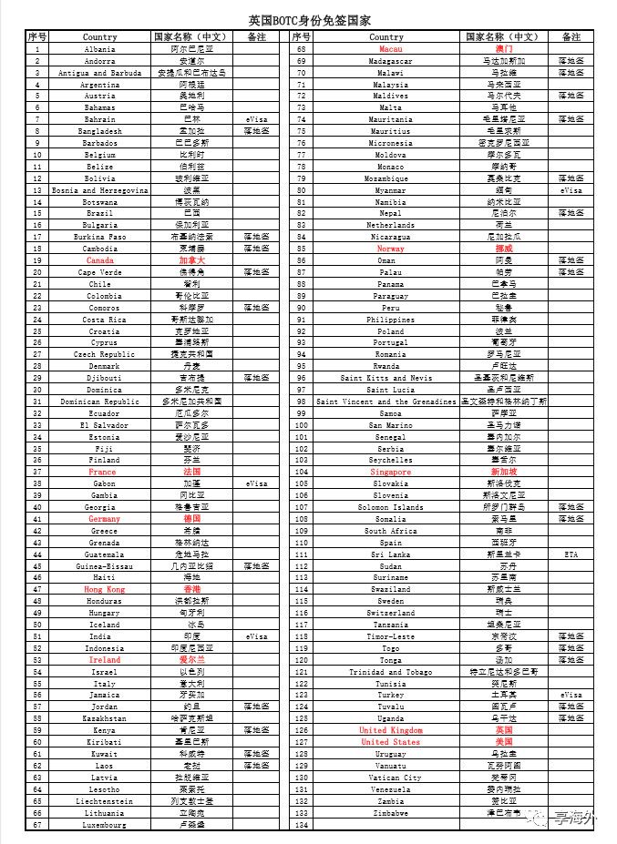 英国BOTC护照免签美、加、欧洲等145个国家和地区