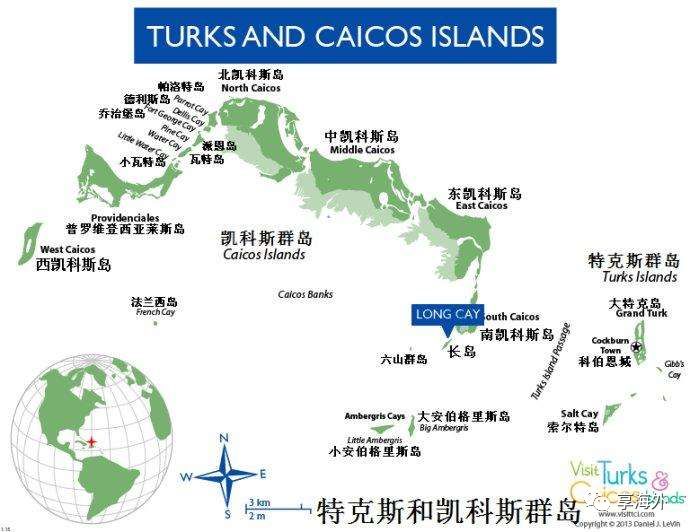 英属特克斯和凯科斯群岛是英国14块海外领土之一,位于巴哈马群岛东南端,距佛罗里达州迈阿密东南部550英里,距海地北部约145公里。东部濒临大西洋,西部同古巴隔水相望。