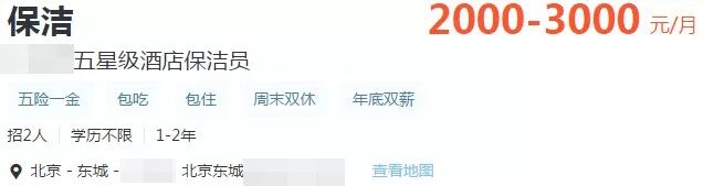 壹读君查阅了几大求职招聘网站,发现北京、上海、广州三地的五星级酒店最近发出的保洁工招聘公告中,写明薪资的大多都是2000~3000元。与北京2018年最低工资标准2120元相近。