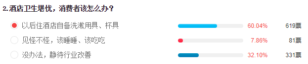 近六成的网友选择自备杯具,其实需要自备的何止是杯具?还有床单、被罩、毛巾、马桶隔离圈、浴缸套......釜底抽薪的方法则是——不住酒店。