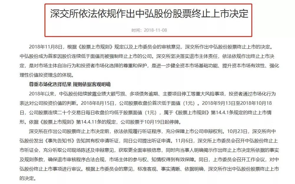 近日,深交所公告,作出中弘股份股票终止上市的决定。