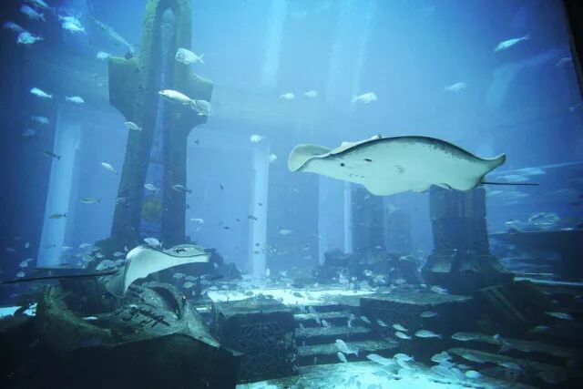亚特兰蒂斯(Atlantis) 柏拉图笔下描绘的海底王国 传说中这个被海洋包围的一整块陆地 因遭遇到突来的水灾和地震 最终沉入海底 而近一个世纪以来 考古学家在大西洋底找到的史前文明的遗迹 似乎在印证着这个传说。 关于亚特兰蒂斯的传说 充满了神秘 新奇和刺激 酒店业相继出现的亚特兰蒂斯品牌 更是代表着一种奢华和水上娱乐的震撼效果 ▼鸟瞰迪拜棕榈岛亚特兰蒂斯