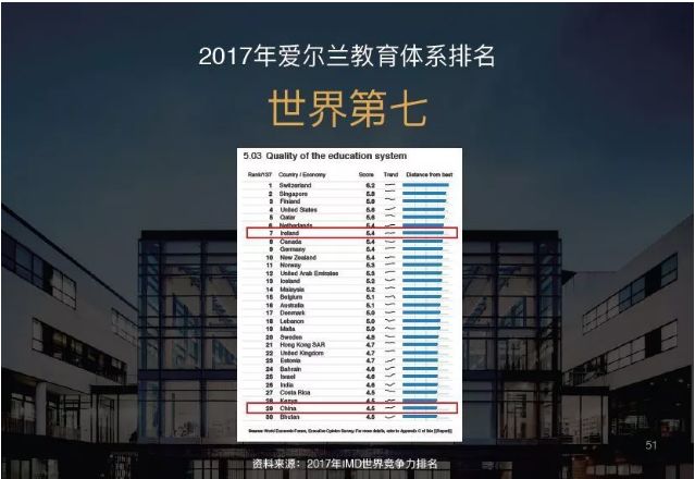 ÔÚ2017µÄÊÀ½ç¾ºÕùÁ¦ÅÅÃûÖУ¬°®¶ûÀ¼½ÌÓýÖÊÁ¿ÊÀ½çÅÅÃûµÚ7£¬³¬¹ýÁ˵¹ú¡¢·¨¹ú¡¢°Ä´óÀûÑÇ¡¢ÐÂÎ÷À¼£¬¾ÍÁ¬ÃÀ¹úǰ×Üͳ°Â°ÍÂí¶¼Ëµ¡°°®¶ûÀ¼ÈËÊÇÊÀ½çÉÏÊܵ½ÎªÊý²»¶àµÄÁ¼ºÃ½ÌÓýµÄÈËȺ¡±¡£