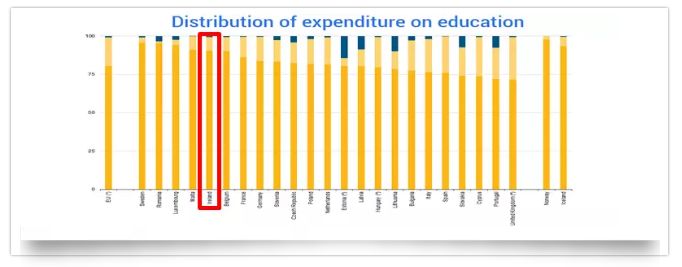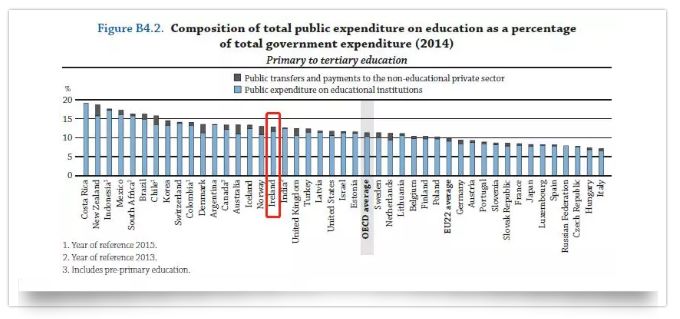 ÔÚÊÀ½ç¾ºÏ×éÖ¯£¨Organisation for Economic Cooperation and Development, ¼ò³Æ OECD£©·¢²¼µÄ2017¡°½ÌÓý¸ÅÀÀ¡±£¨Education at glance£© ÖУ¬¹«²¼Á˹ú¼Ò²ÆÕþÖ§³öÖнÌÓý°å¿éµÄÕ¼±È£¬°®¶ûÀ¼ÅÅÃûµÚ17£¬¸ßÓÚ¾ºÏ×é֯ƽ¾ùˮƽºÍÅ·ÃËÆ½¾ùˮƽ£¬²¢ÇÒ³¬Ô½´«Í³½ÌÓýÇ¿¹úÓ¢¹ú¡¢ÃÀ¹úºÍµÂ¹ú¡£
