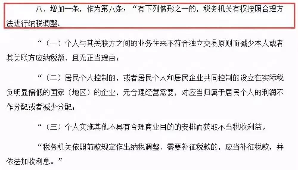 导语 作者:震谷子 来源:海外掘金(ID:gold1849) 还不懂得筹划海外资产纳税的高净值人群,将要在2019年承担苦果。 距离中国个税新规的实施,已不足半个月。 下个月开始,包含海外资产相应条款的个税新规将正式实施。赶在2019年1月1日前,中国富人正急着筹划自己的资产和收入,来庇护自己的上万亿美元的海外资产。 而中国新个税法的实施,正在加速富人税务筹划的步伐。 (来源:彭博12月13日报道) 海外信托往往是中国富人资产配置和税务筹划的重要关注点。随着19年1月的临近,大家的动作明显加快了。据新加坡银行财富规划主管Woon Shiu Lee表示,今年8月以来,咨询信托方面的“税务筹划”的人数,提高了一倍。 不过,在愈来愈密集的税务风暴面前,能够规避风险的“灰色地带“越来越小,寻求专业税务师进行全盘的税务筹划,或许才是应对让人提心吊胆的2019的最好办法。 一 还有14天,对高净值人群来说极其重要的2019就将开启。 2019年1月1日,中国新个税法将全面生效。在本次修订的新个税法中,首次出现的“反避税条款”意味着将对高净值人群强化征管: 常在河边走,哪有不湿鞋。高净值人群曾经为了避税而各出奇招,如今新个税法把“刀口”朝向他们,背后有三大逻辑: (1)这是稳定政府财政收入的需要。新个税法提高个税起征点,受益的仍是大部分中低收入人群,是每天为了三餐奔波的工薪阶层。但是少数高薪者缴纳的税款才是其中的大头。 据国家税务总局税收科研所原所长刘佐介绍,2017年,中国只有四分之一左右的就业人员属于个税纳税人,在2019年实施新个税法后,这个比例甚至可能低于8%。如果我们是光荣的纳税人,是不是可以安慰自己,咱也算是挤进全国前10%的行列了? 那么,为了稳定政府财政收入,纳税人群减少的情况下,自然地,高净值人群便在税务风暴下首当其冲。 中国自古以来,国库变空时,只有向大众征收和向大户征收两种选择。按照我们之前的分析,接下来对高收入者逃税、漏税的查处将更为严厉,以保证国库的盈余。 (2)这是追缴历史逃税、漏税的需要。在立法人和税务总局看来,让逃税的一部分人,依法依规把钱吐出来是再符合道义不过的事情。波士顿咨询估计,尽管中国政府去年加强了资金出境的控制,以减少高风险的海外并购交易并防止资本外逃,但海外资产规模2018年仍将达到1万亿美元。 (3)这是安抚社会情绪的需要。近十年来,中国人仇富心理越来越突出,甚至成了激化社会矛盾的源头。中国较差的营商环境带来了这种仇富心理。在最新的世界银行《营商环境报告》中,虽然中国大陆排名上升了32位,但五年前中国大陆的营商环境还在100名左右徘徊。 落后的营商环境,让想要通过个体经济致富的中国人铤而走险,在最不起眼的地方挖掘财富的来源,自然让老老实实干活赚钱的民众感到不爽。而税务风暴向富人们袭来,可以在一定程度上安抚仇富的社会情绪。 这样一来,新个税法事实上是在减轻中低收入人群税负的同时,又让富人多掏腰包。 二 火都烧到眉毛了,高净值人群当然也不能坐以待毙。 以前,高净值人群想要避税,靠的是自身的智慧,例如改变税务居民身份,例如增加海外收入,甚至还有人想出了利用时间差这种大开脑洞的神操作: 曾经有一位英国富豪,为了躲过税务局的稽查,每隔一段时间,就选一天,在23时50分离境,飞到英国境外的皇家属地泽西岛,等到第二天的0时30分再入境。这样一来,虽然事实上他只离境了40分钟,但在英国税法规定下,他足足少了一天的计算时间。 在纳税居民身份核定上,中英的算法是一致的,通过计算该居民在境内时间是否超过半年来确定纳税身份。因此,原则上,只要改变在境内时间就可以达到改变纳税居民身份的目的。 而如今,富人们不用半夜飞来飞去,又费钱又费油的,他们正在通过第三方手段来保护自己的海外资产和收入。 新加坡银行财富规划主管Woon Shiu Lee表示,2018年下半年以来,该行看到对境外信托业务感兴趣的中国客户增长了35%。 比别人多走一步的高净值人群,正在利用新的方式对冲新个税法带来的的风险: 保险。今年9月1日,中国进行了第一次CRS金融信息交换。包括年金保险在内的海外金融账户信息将被分享给达成互换协议的国家。但仍然有部分国家和地区没有实行CRS,仍然有部分高净值人群通过购买这些地区的保险来进行财富传承。因为保费可以税前扣除,保费的未来收入也有部分可以免税。 信托。也有部分高净值人群通过指定受益人,把海外企业的利润流入受益人手里,让受益人代替本人去纳税,从而规避了本人海外账户不明资金被披露的风险。新个税法的“反避税条款”指定要核查海外关联企业的收益,CRS也要求披露信托账户在内的金融账户,但账户归账户,信托本身的隐秘性并不会被根本改变。这就给专注于设立某类信托的信托顾问、私人银行家和律师带来了生意。 有数据显示,招行管理的资产规模位列亚洲第二,仅次于瑞银(UBS)。其竞争对手中国银行,和有着“宇宙行”之称的工商银行也在香港发展私人银行业务,以帮助他们的客户在海外投资。 不过,国家税务总局也不是喝西北风长大的。在CRS下,一个富人办理的海外信托如果被判定为是消极非金融机构,而且其在金融机构持有账户,则会被要求提供信托实际控制人(例如委托人和受益人)的信息。 三 既然高净值人群自己规避税务稽查