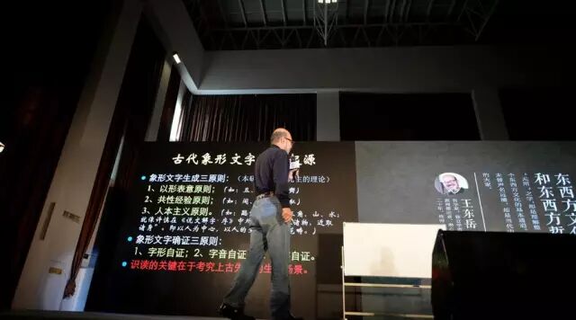 以形表意原则 人类从自身和物象找符号,近取诸身。倒三角代表女性,正三角代表男性。人类远古时代是群婚制,只知道母亲和祖母,女性祖先才叫帝,后来人搞错了,用帝称呼男性。远古时代形容男祖是“且”,后来怎么变成祖呢?因为到了祭祀的时候,有了礼桌。 共性经验原则 “闯”,门里面为什么是马呢?古人和今人在智力上没有差别,只是信息量极低,所以会把很多事情琢磨透。古人发现所有动物出圈门很慢,否则受伤就必死无疑,除了马,于是在门里画一个马,代表“闯”。 为什么画一个指甲代表“白”?因为干活的时候,手都是脏的,但是指甲可以是白的,其它人看到都会明白,于是就是共性经验原则。 人本主义原则 就是造字都是以人为中心的。