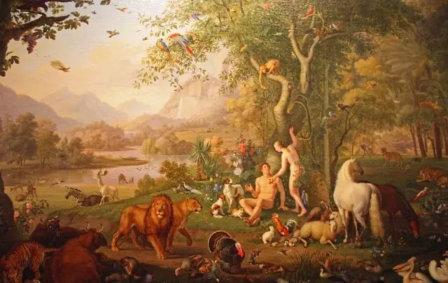 人类当年处于采猎的状态下,被基督教称为“伊甸园”,或“伊甸乐园”。基督教里面讲“失乐园”的故事,亚当和夏娃在乐园里面享有上帝赐予的丰厚生活资料,由于受了恶魔诱惑,吃了苹果,有了智慧和知识,然后被驱逐出去,这里的寓意是“人类文明是人类的不幸”。