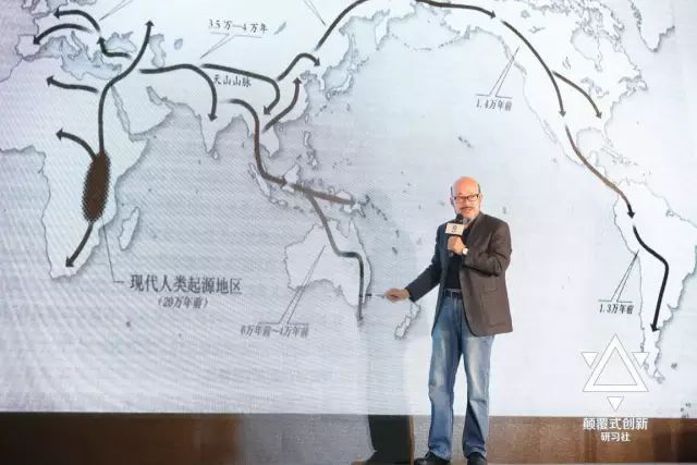 这个学说出来之后,人文学界全部反对,持高度怀疑态度,上海金立教授开始研究Y基因。细胞核内的基因是46条染色体,女性染色体是XX,男性染色体是XY。Y基因是什么呢?是X基因断了一条腿,Y基因只有男性具有,于是这位教授就研究Y基因,它由父亲传给儿子,儿子传给孙子,他发现人类所有Y基因追溯到7万年前左右,再次验证非洲东非大裂谷演绎出来了人类。为什么讲这个学说和新发现?就是想让大家看到现代智人的全球迁徙图。