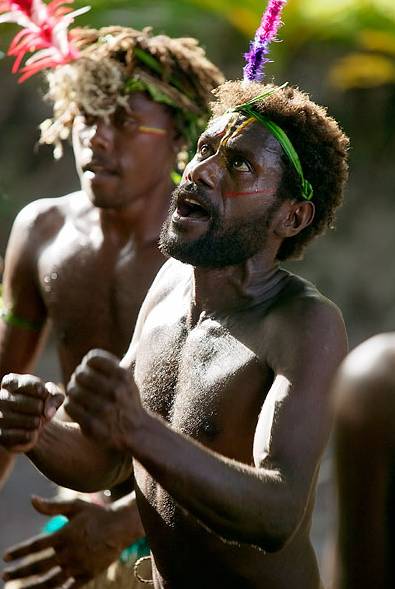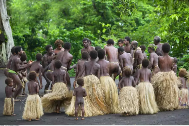 在瓦努阿图的高山丛林,生活着比较原始的土著。他们赤身裸体,仅以一条草裙遮羞。